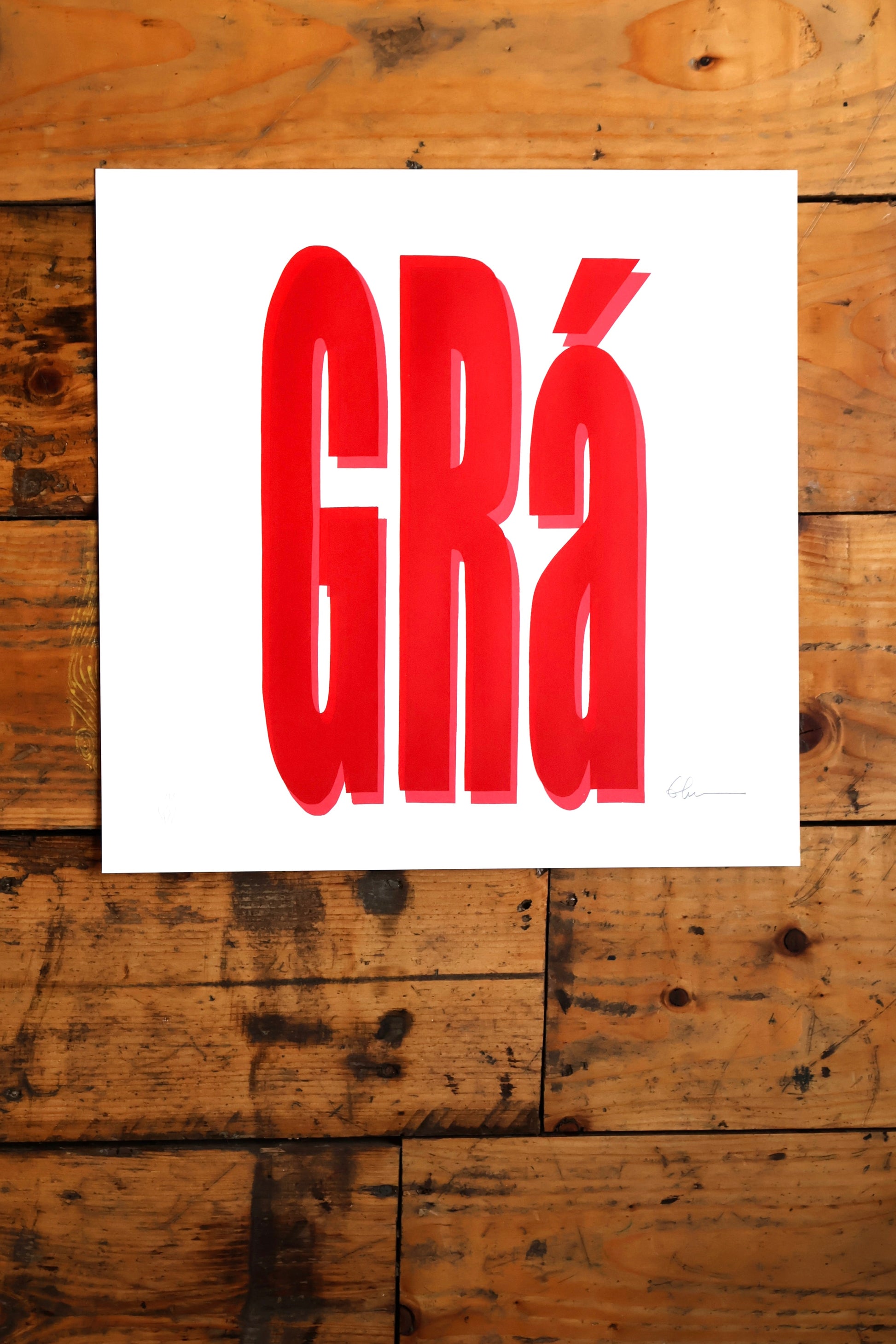Bold and bright in pink and red inks, this series is screen-printed by hand here in our studio. Grá + Mór (Big Love) are designed to be hung together, but can be bought separately.