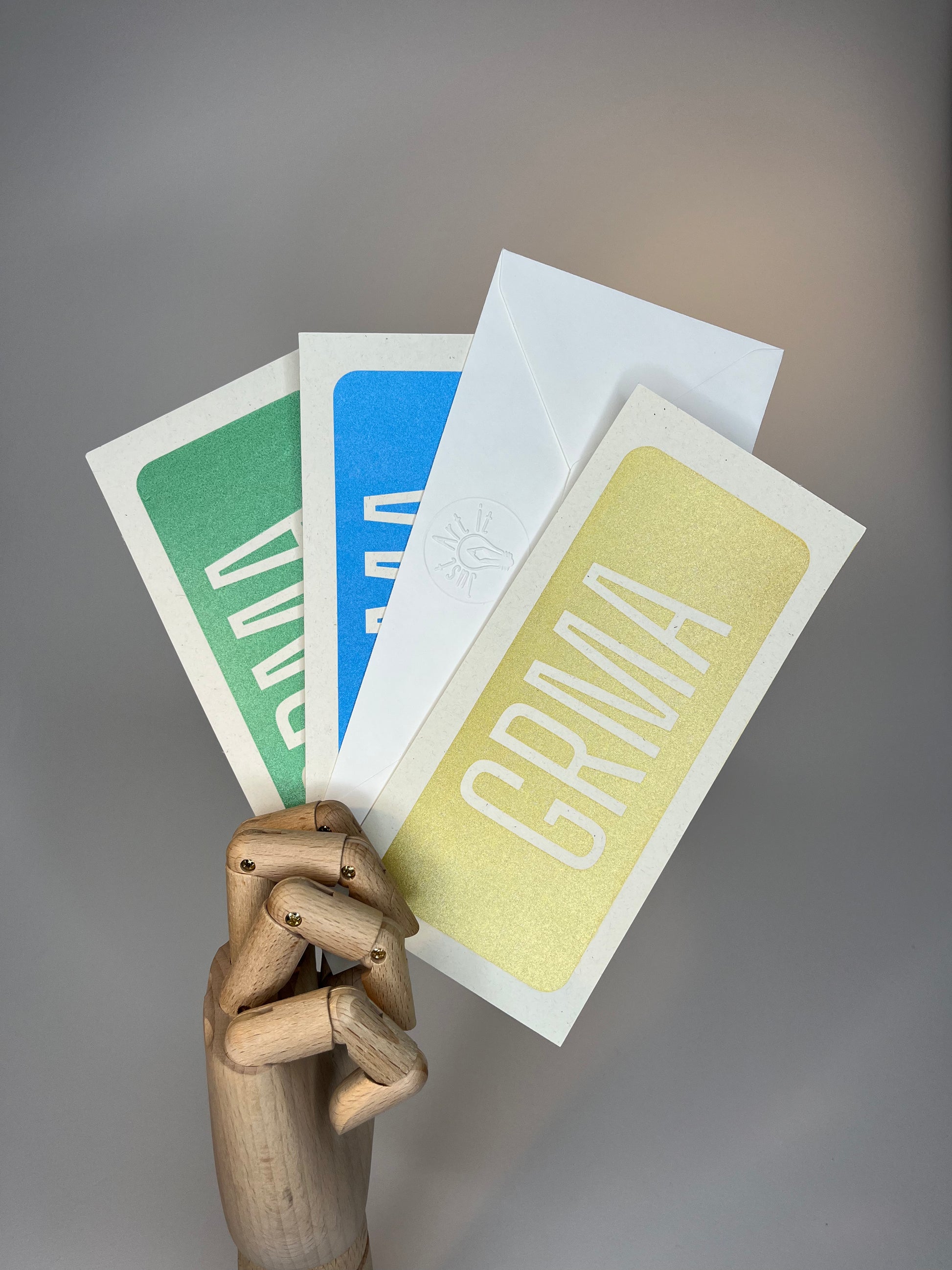 - Sold individually with a cream envelope.
