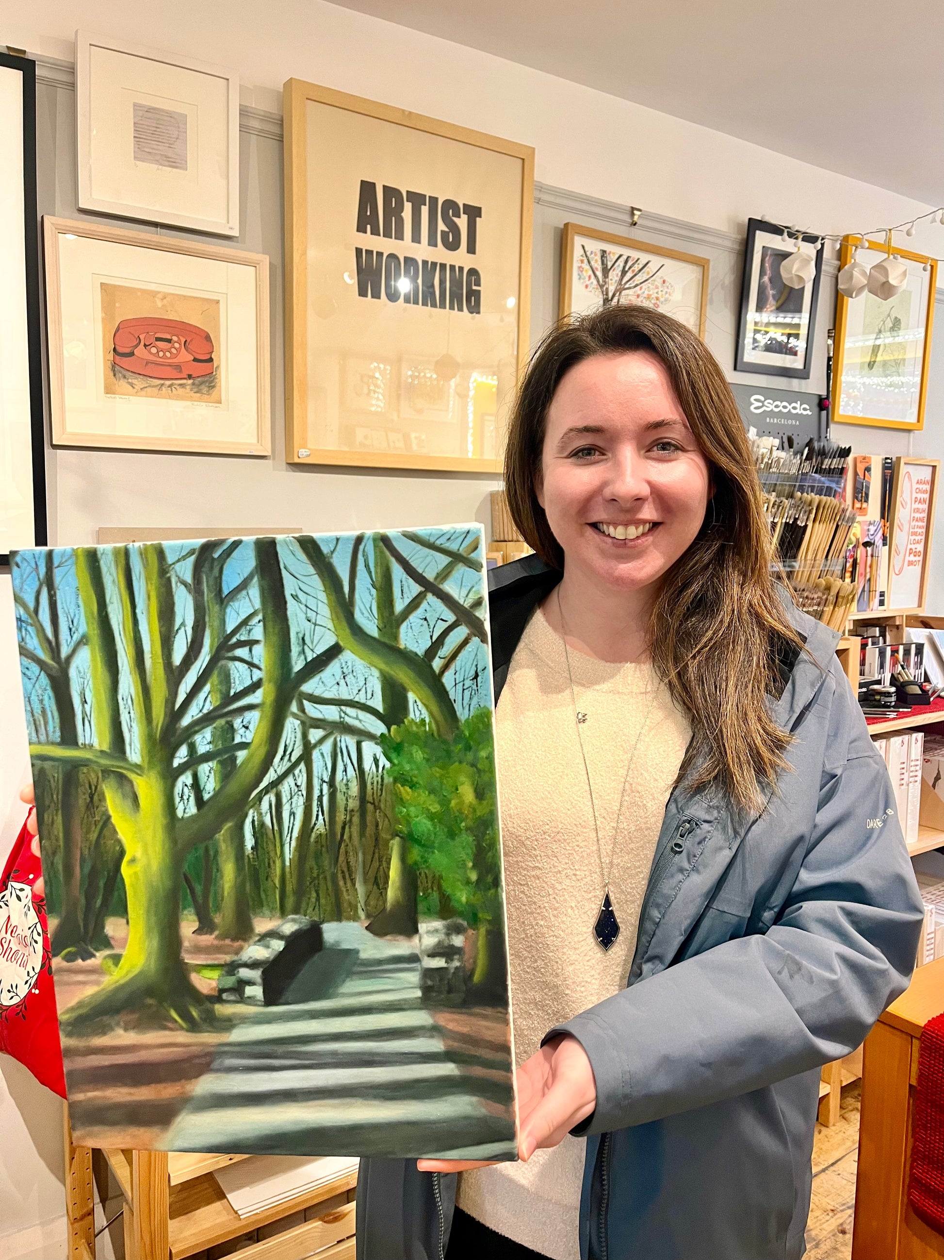 You will learn about colour mixing, and how to use the grid method to enlarge or transfer your own image to paint on your canvas. You will use our professional equipment like stand up studio easels, and everything you need to complete this course including oils, canvas, professional Escoda brushes, aprons, palettes, etc is provided and included in the fee of the course.